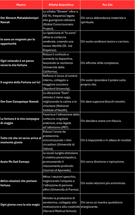 Sulla base degli studi citati, possiamo affermare che i mantra sono una tecnologia antica validata dalla scienza moderna. Ogni volta che ne reciti uno, stai ridisegnando il tuo cervello, sintonizzando l’universo sulla frequenza della tua intenzione e aprendo la porta a una vita più abbondante e soddisfacente.